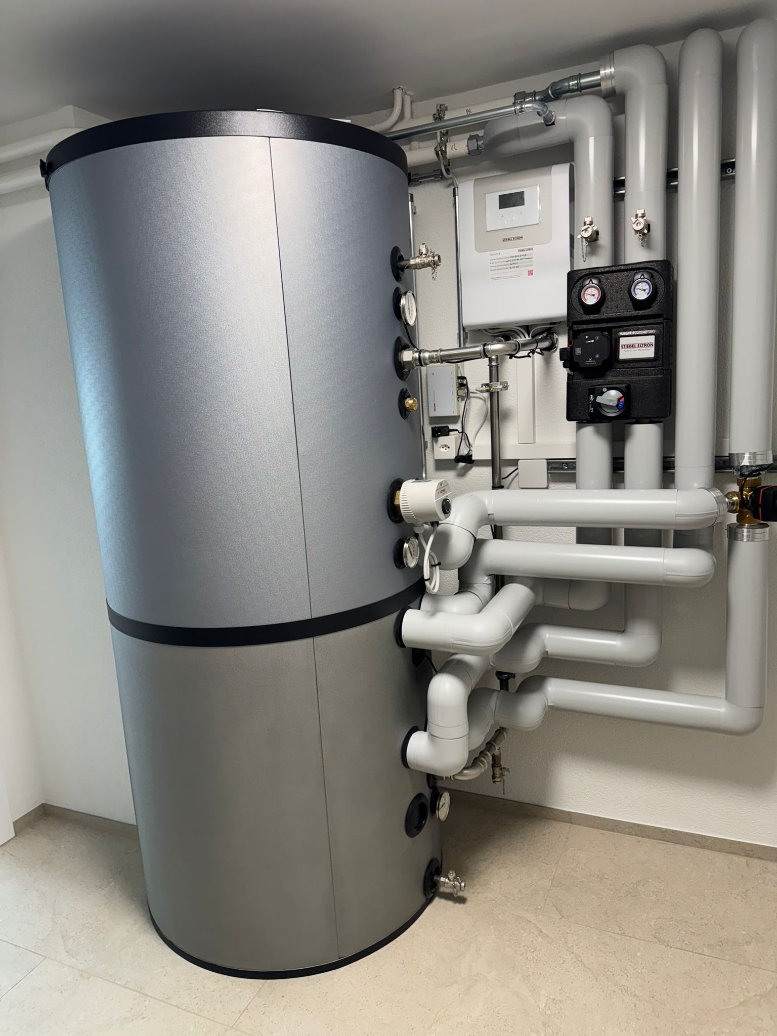 * Komponenten: Installation eines neuen Heizwasserspeichers sowie eines separaten Boilers für eine zuverlässige Warmwasseraufbereitung.
